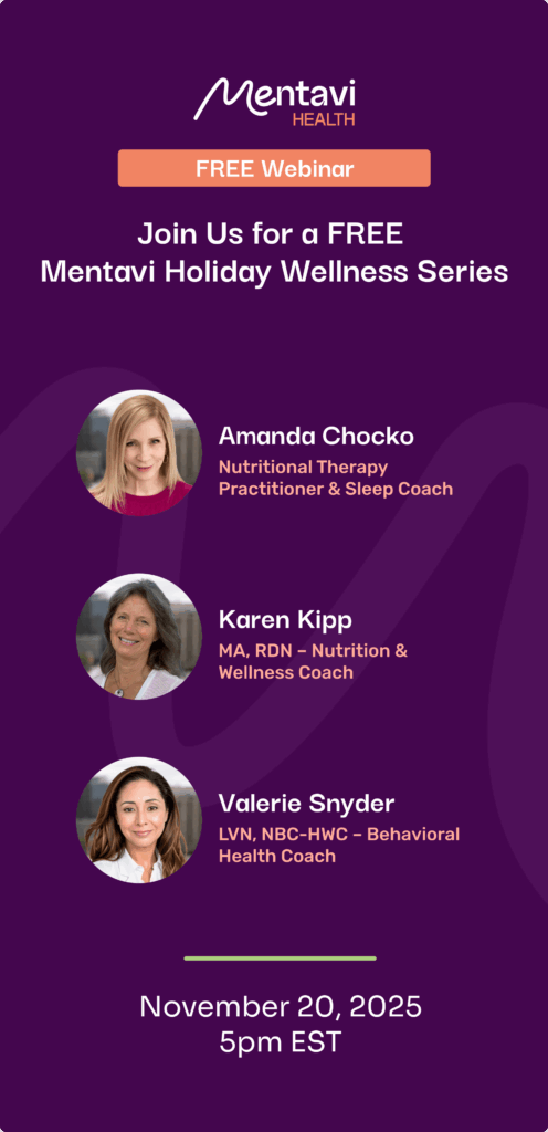 You’ll hear approachable insights from Valerie Snyder, Amanda Chocko, and Karen Kipp, Mentavi’s behavioral health and wellness coaches.